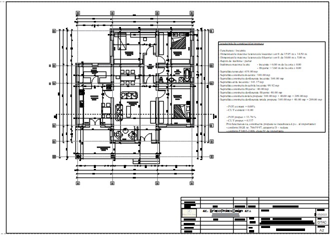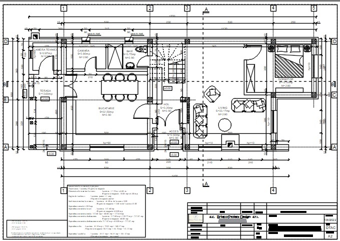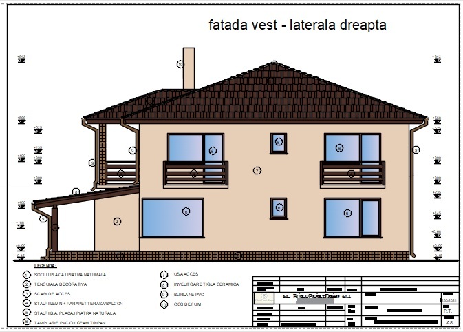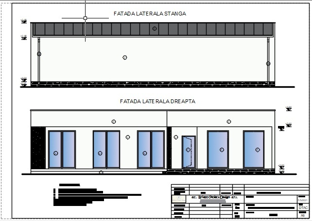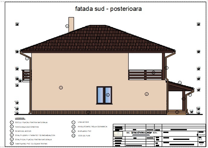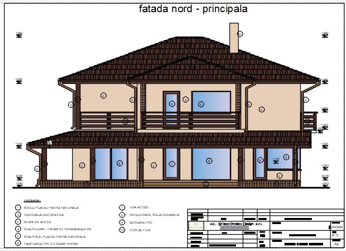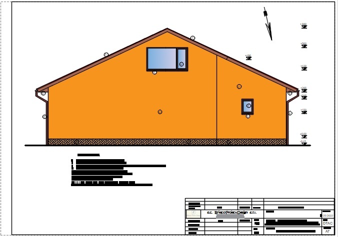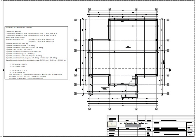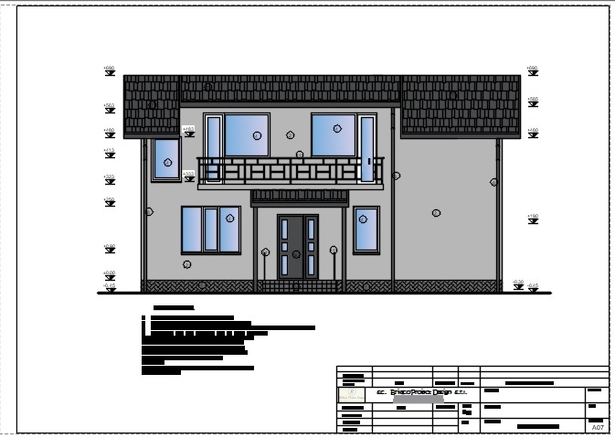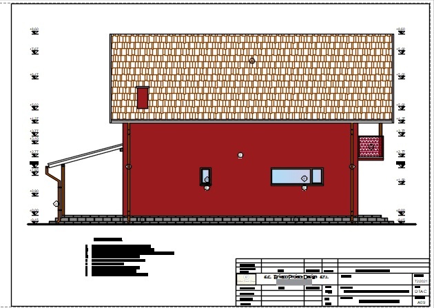 Locuinta "C.N."- regim de inaltime parter si etaj. Constructia va fi realizata din zidarie de bca de 30 cm grosime. Sarpanta va fi tip terasa.