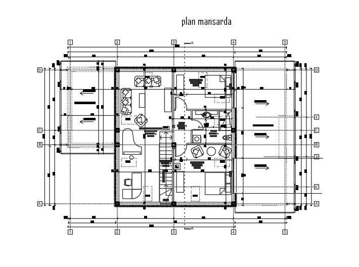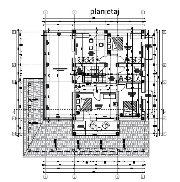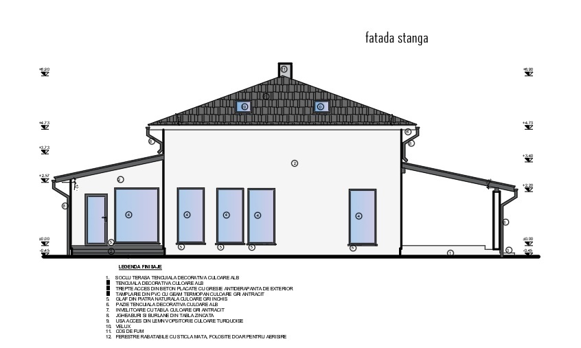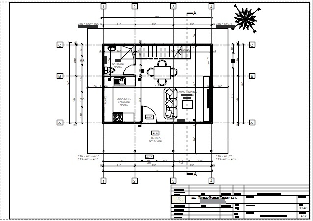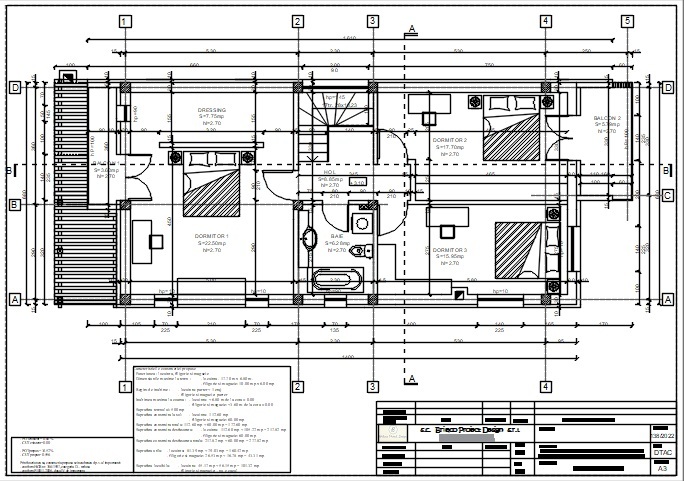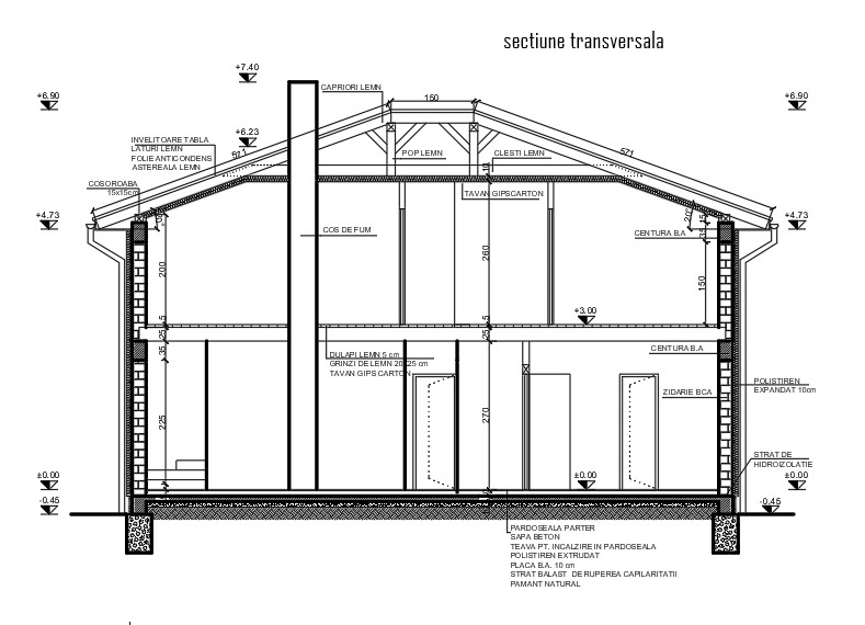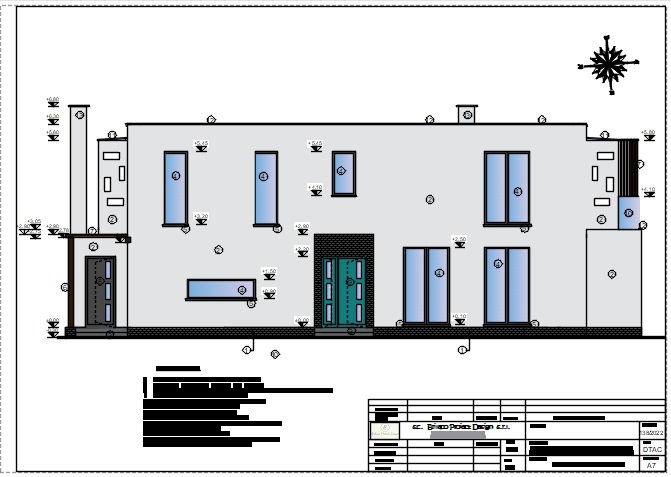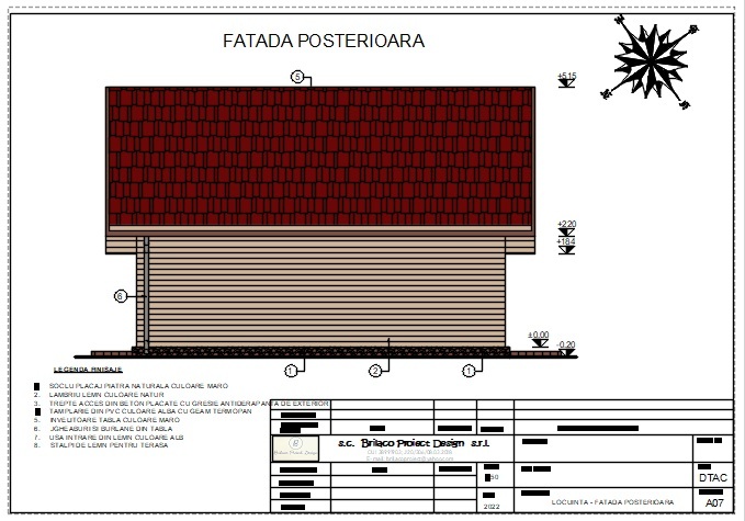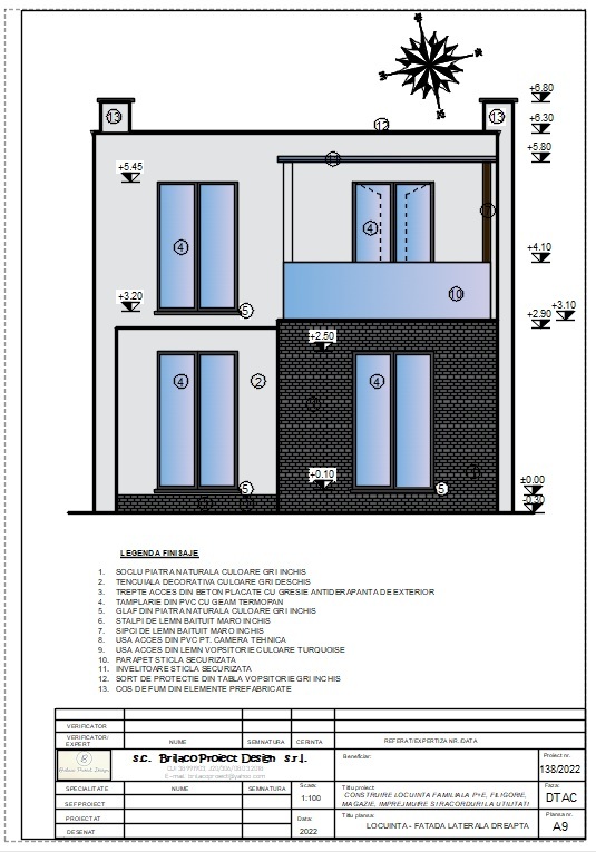 Locuinta "C.N."- regim de inaltime parter si etaj. Constructia va fi realizata din zidarie de bca de 30 cm grosime. Sarpanta va fi tip terasa.